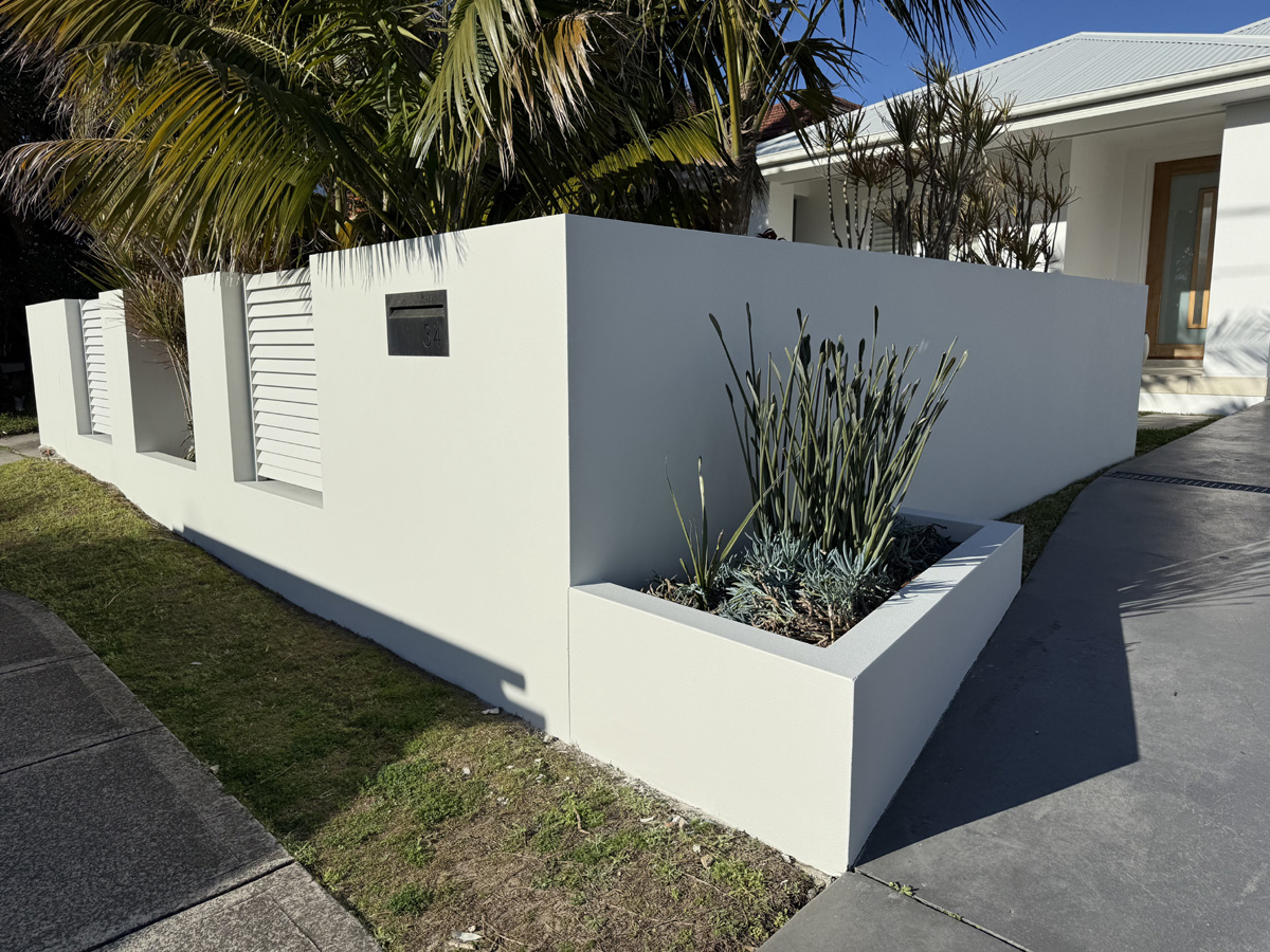 - Applied Dulux Render Sealer to stabilise repairs and promote adhesion.